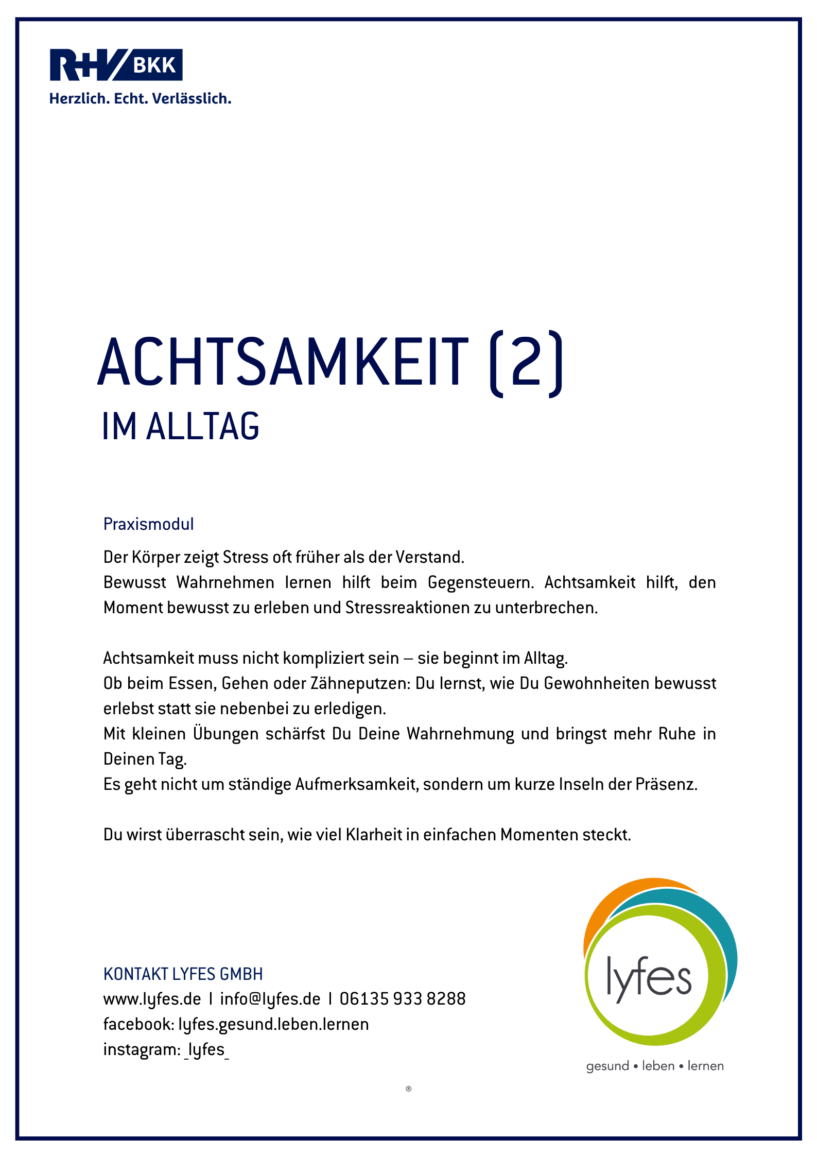 Praxismodul: Achtsamkeit (2) – Achtsamkeit im Alltag