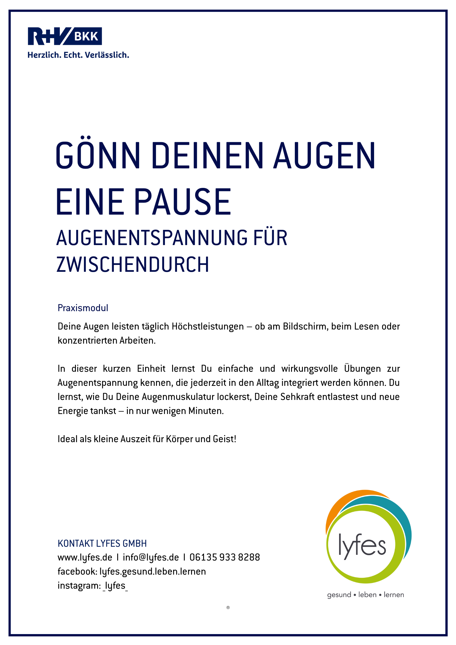 Praxismodul: Gönn Deinen Augen eine Pause – Augenentspannung für zwischendurch