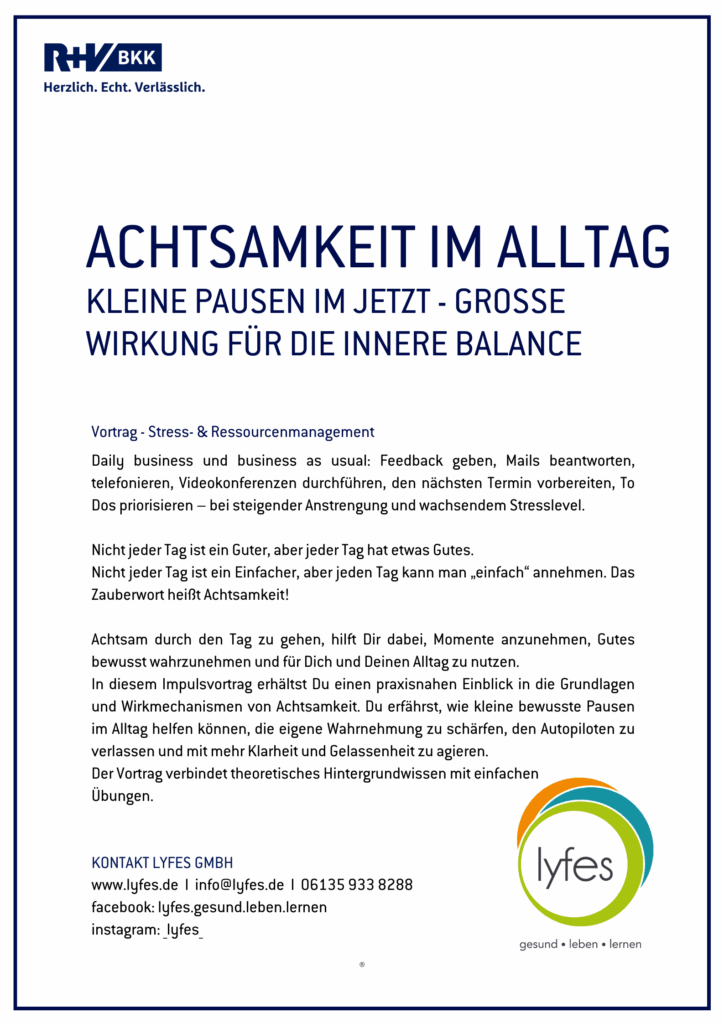 Impulsvortrag: Achtsamkeit im Alltag leben – Kleine Pausen im Jetzt – Große Wirkung für die innere Balance