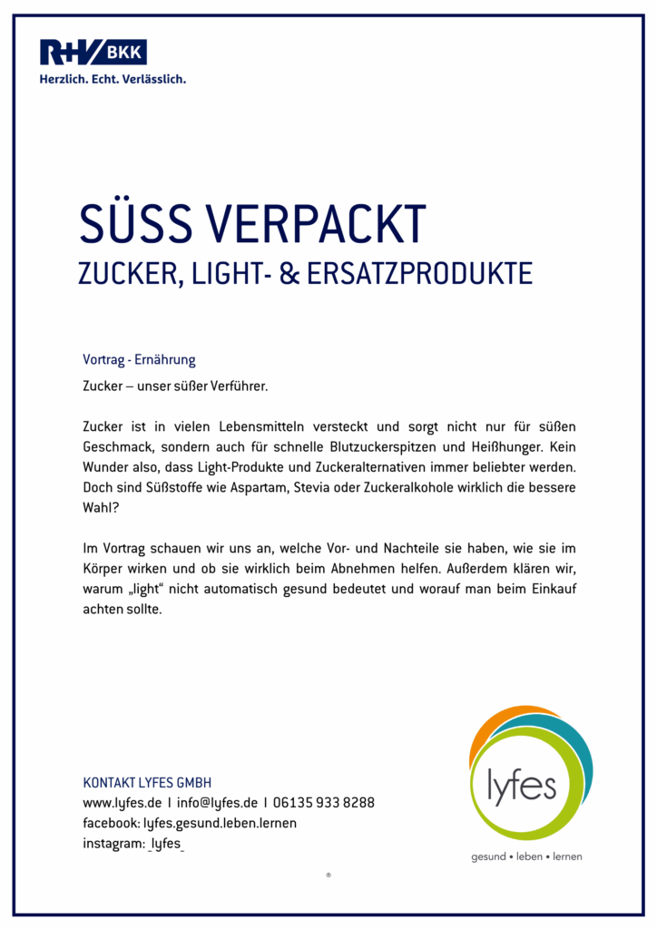 Zucker ist in vielen Lebensmitteln versteckt und sorgt nicht nur für süßen Geschmack, sondern auch für schnelle Blutzuckerspitzen und Heißhunger. Kein Wunder also, dass Light-Produkte und Zuckeralternativen immer beliebter werden. Doch sind Süßstoffe wie Aspartam, Stevia oder Zuckeralkohole wirklich die bessere Wahl? Im Vortrag schauen wir uns an, welche Vor- und Nachteile sie haben, wie sie im Körper wirken und ob sie wirklich beim Abnehmen helfen. Außerdem klären wir, warum „light“ nicht automatisch gesund bedeutet und worauf man beim Einkauf achten sollte.